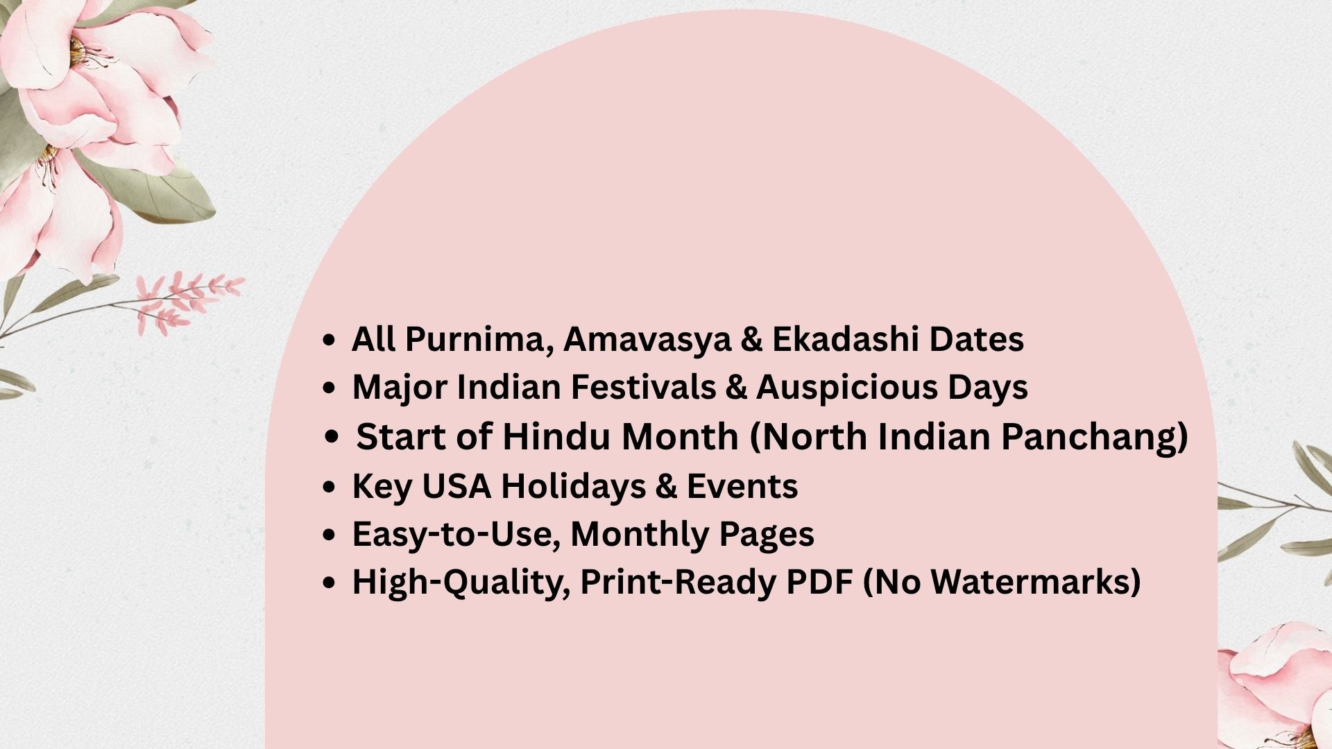 2026 Hindu Calendar Printable Planner Indian Festivals and Major USA Holidays Digital PDF Download