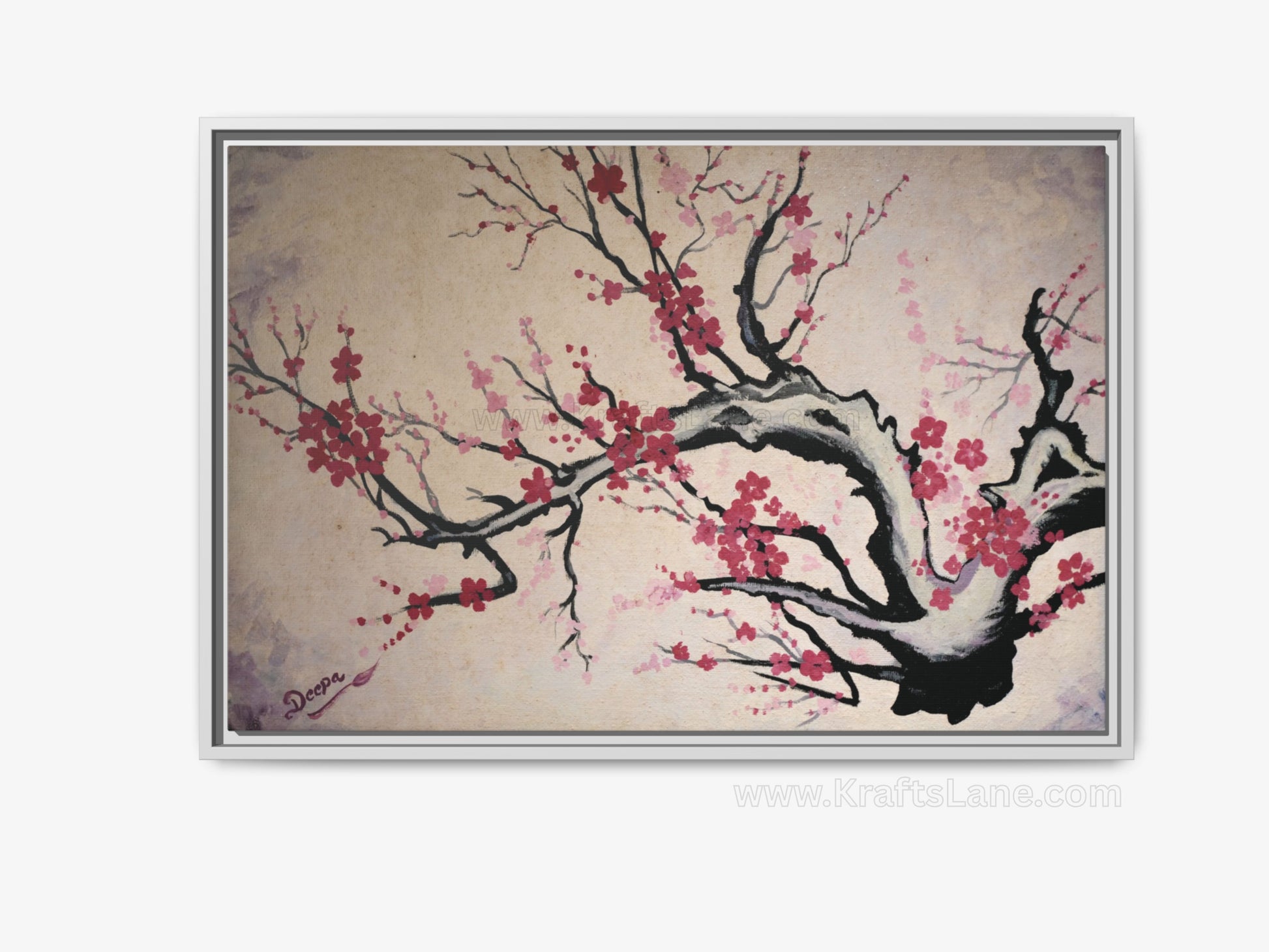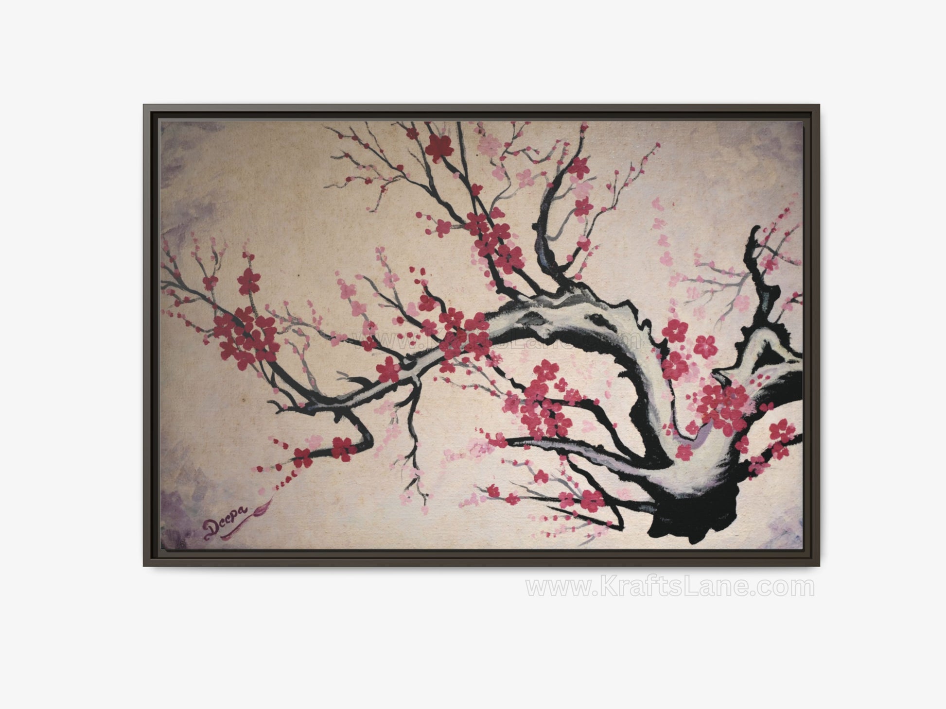 Cherry Blossom Wall Art Print Floral Tree Canvas Pink Blossom Painting Nature Wall Decor Asian Inspired Art Spring Home Decor
