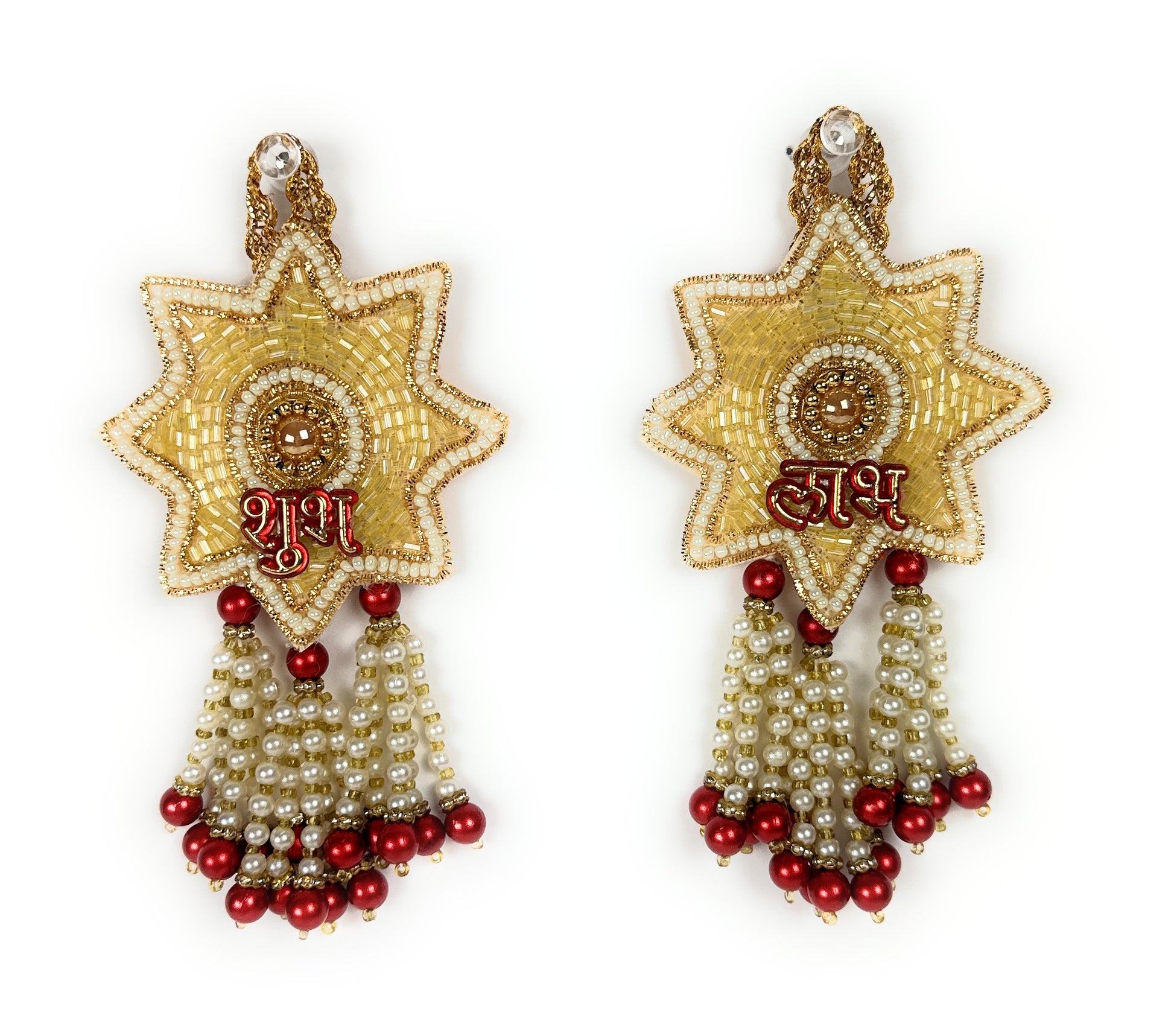 Handcrafted Indian Decorative Shubh-Labh Door Hanging with Pearls and Gemstones, Durable, Diwali Deepawali Decor, Housewarming, Unique Gift