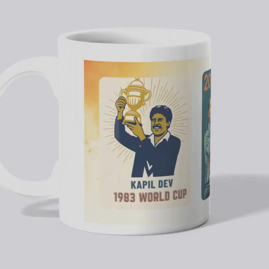 Celebrate Indiaâs cricketing legacy with our Indian Cricket World Cup Trophy Mug, a must-have for every true fan! This premium ceramic mug proudly features the three iconic World Cup victories by the Indian Cricket Teamâ1983, 2011, and 2025âetched in timeless design around a gleaming trophy illustration.