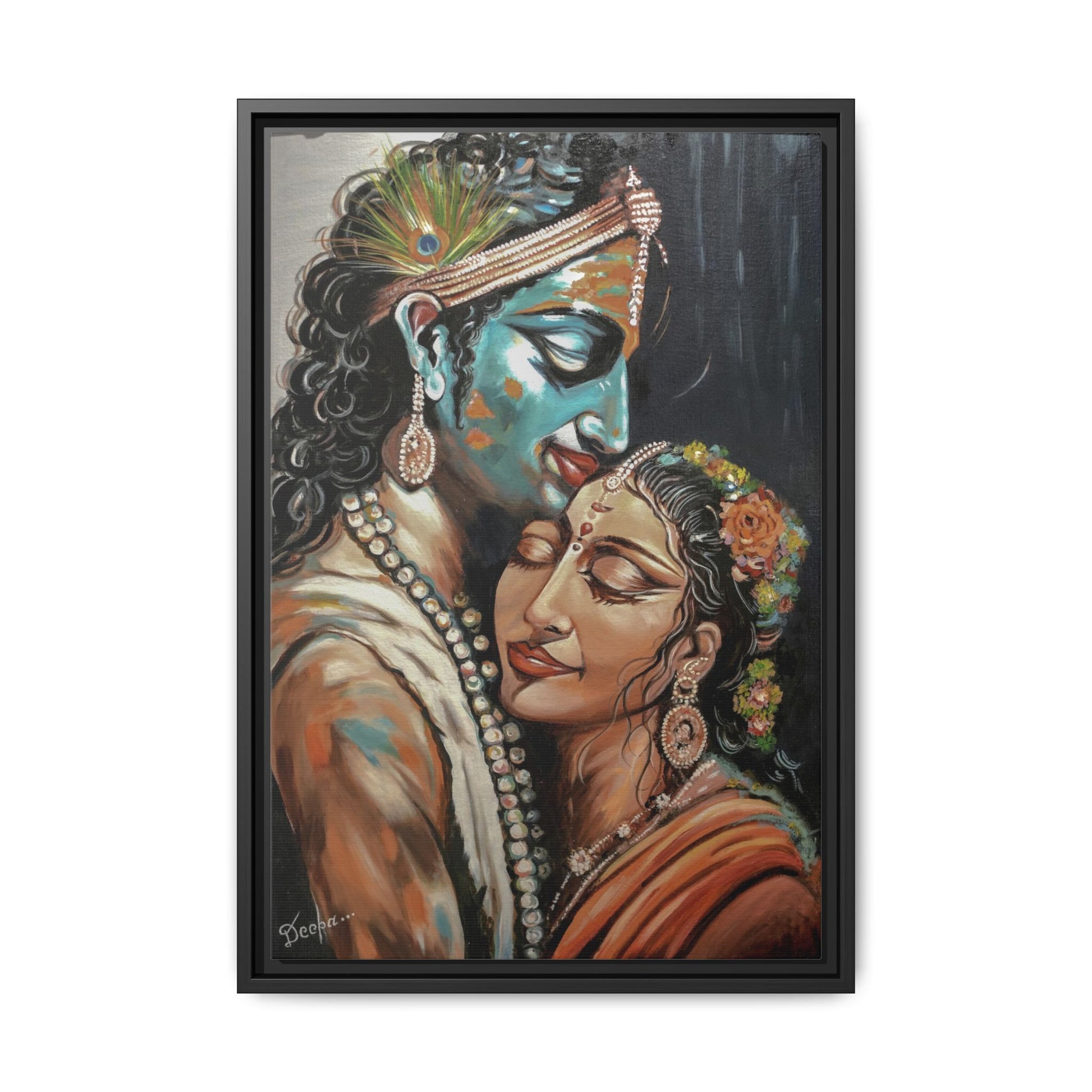 Invite divine love and sacred serenity into your space with this Radha Krishna wall art print, professionally reproduced from the original hand-painted oil painting.